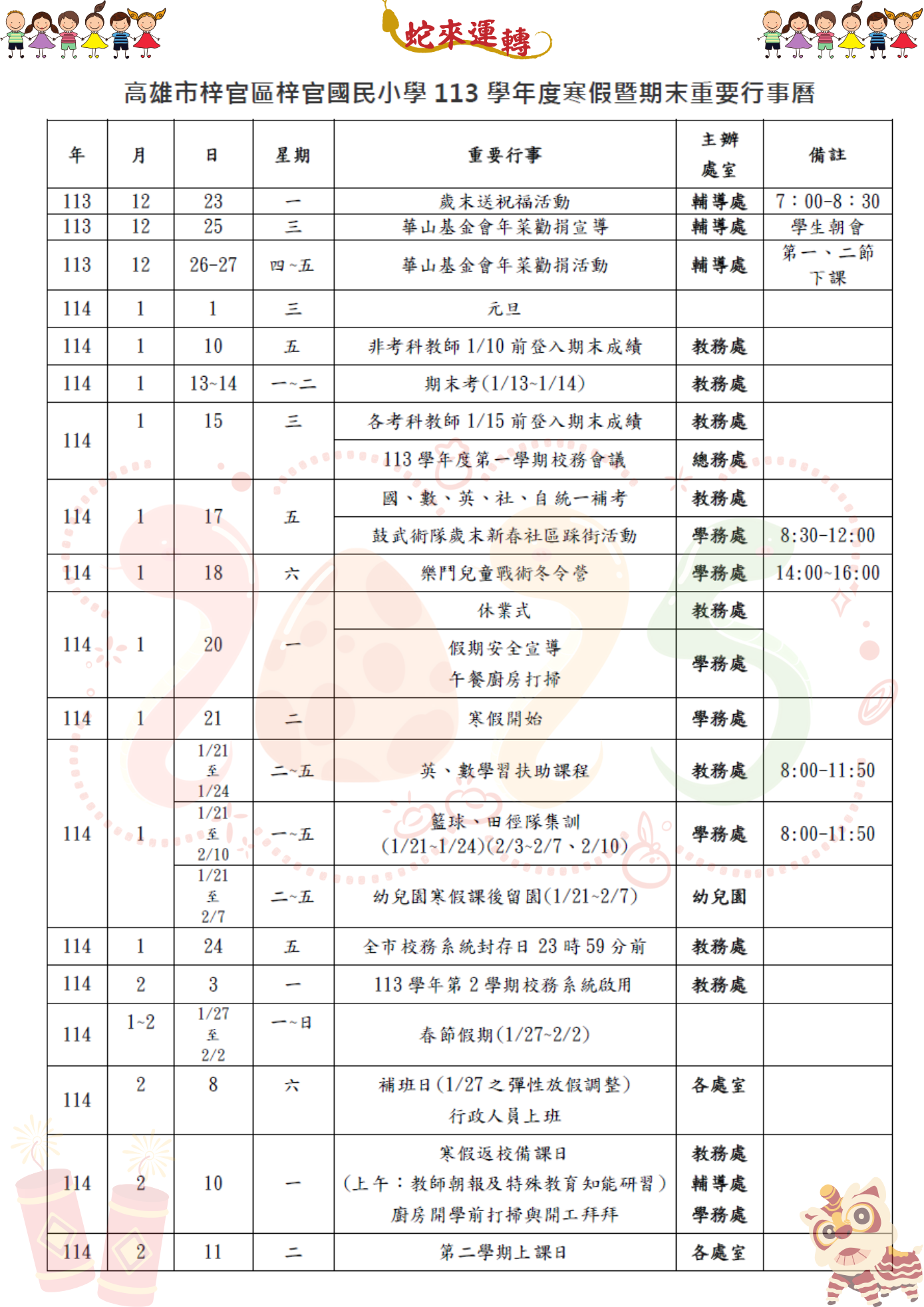 📄 高雄市梓官區梓官國民小學 113 學年度寒假暨期末重要行事曆